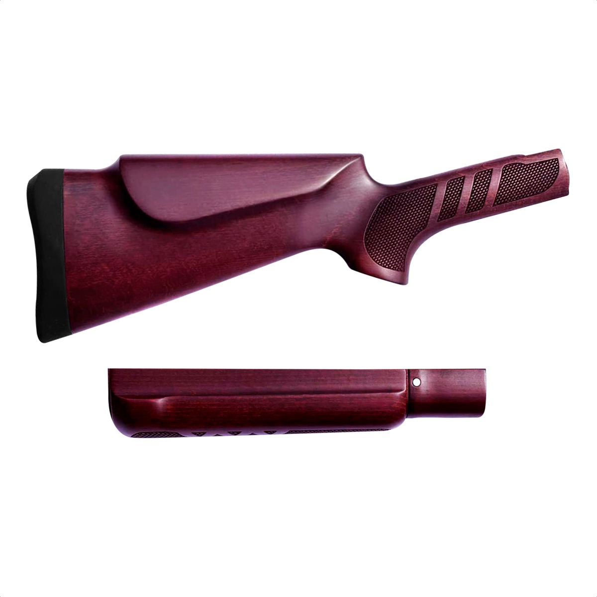 Coronha e Guarda mão em madeira (FAIA) para Rifle modelo Puma Rossi fabricada pela CBC Cano Redondo. A coronha e a telha pesam 750g, a Coronha é 4 cm mais longa que a original e 1 cm mais alta no monte carlo facilitando a o enquadramento da alça e massa de mira, soleira em borracha macia. Para modelos fabricados antes da CBC pode ter que ajustar a furação da fixação da coronha, que terá que ser feita pelo comprador, esse ajuste não vai causar danos estéticos ou funcionais. Como a coronha é de madeira nenhuma e igual à outra. Acabamento pintura alto padrão.